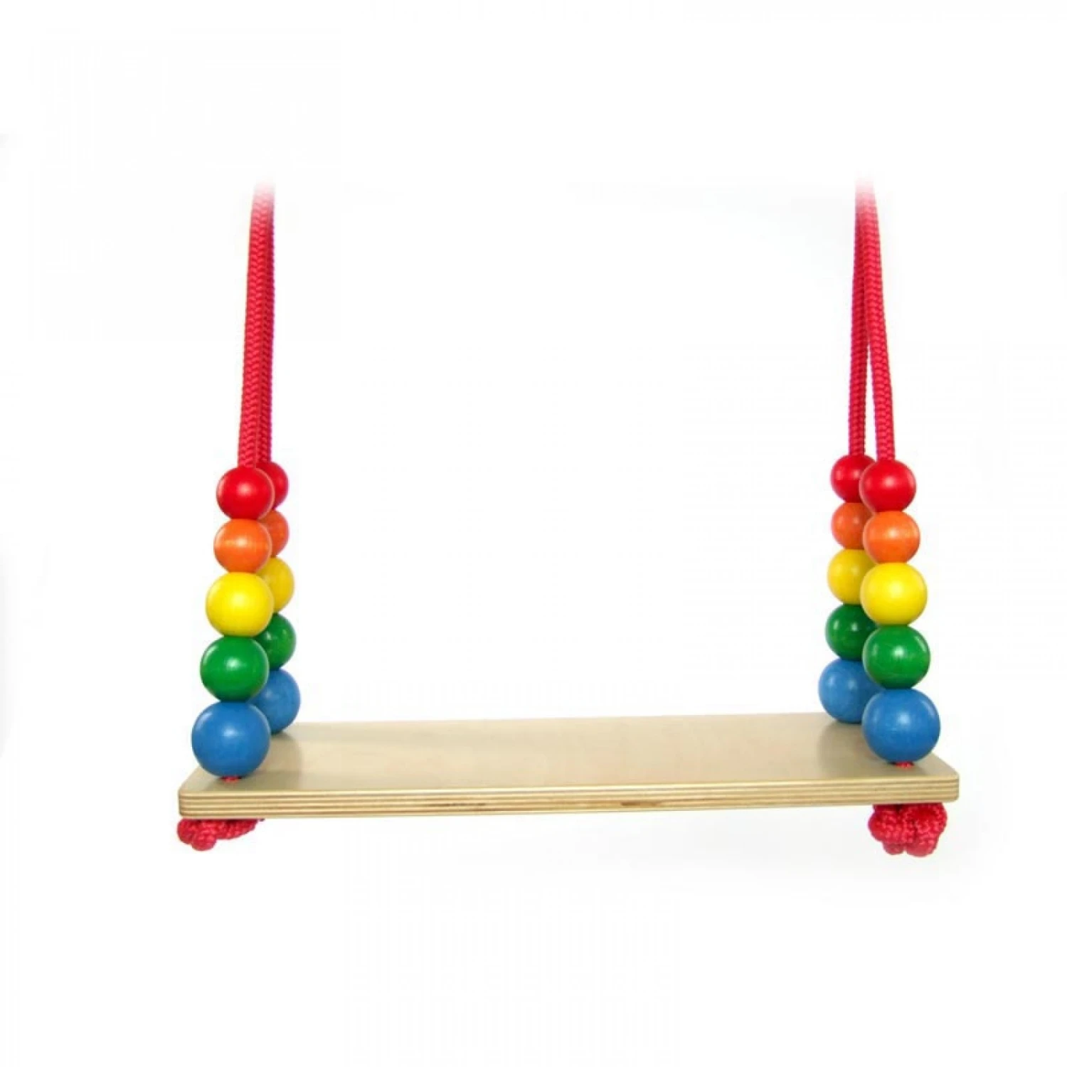 Cette balançoire en bois avec ses perles colorées, trouvera sa place accrochée à un arbre ou à un portique. Une balançoire classique qui a toujours autant de succès.