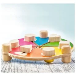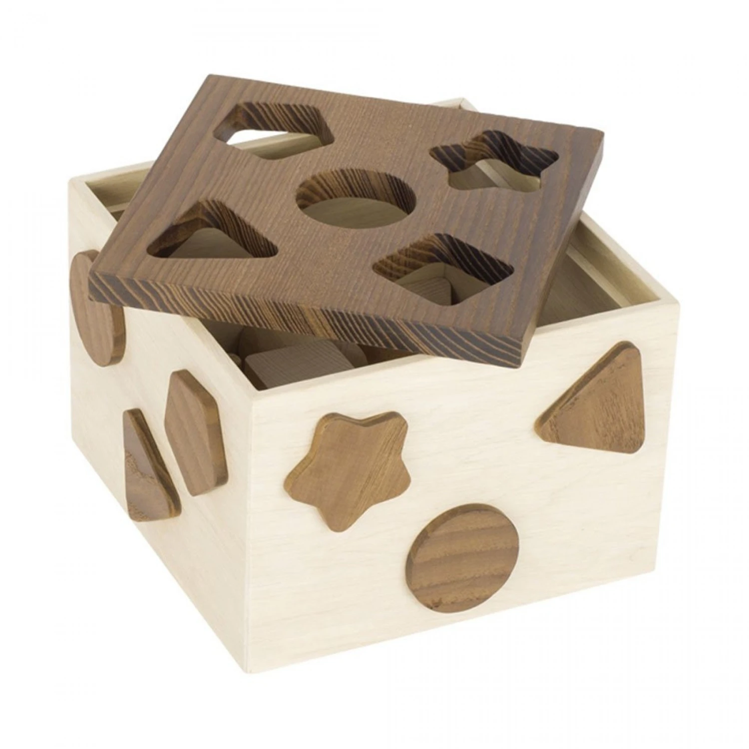 Cette boîte contient 5 formes différentes en bois. Le couvercle est amovible pour permettre le retrait des éléments.