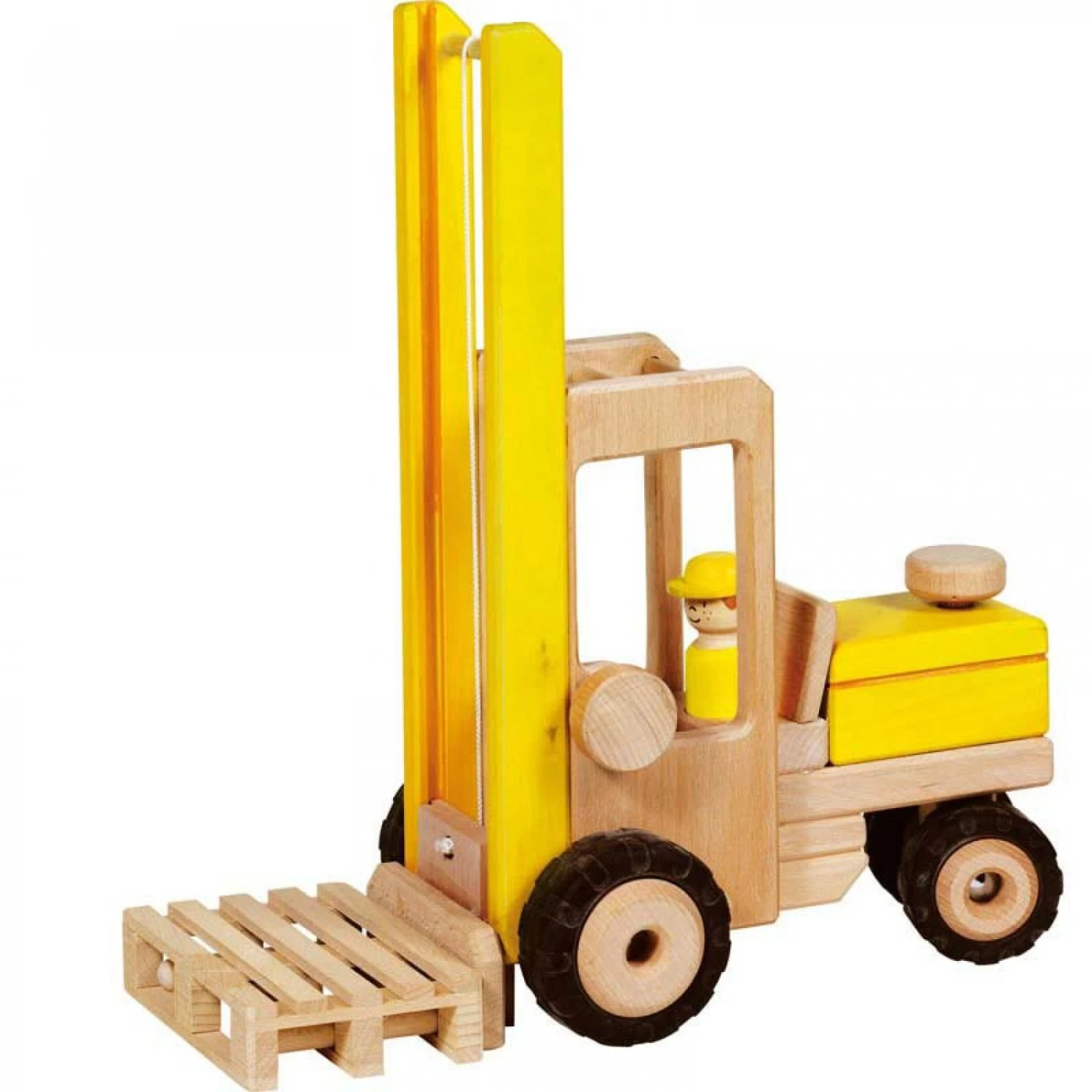 Un chariot élévateur très pratique pour transporter des articles volumineux…Le chariot est équipé d’une palette en bois amovible. Roues avant directionnelles en bois et caoutchouc.