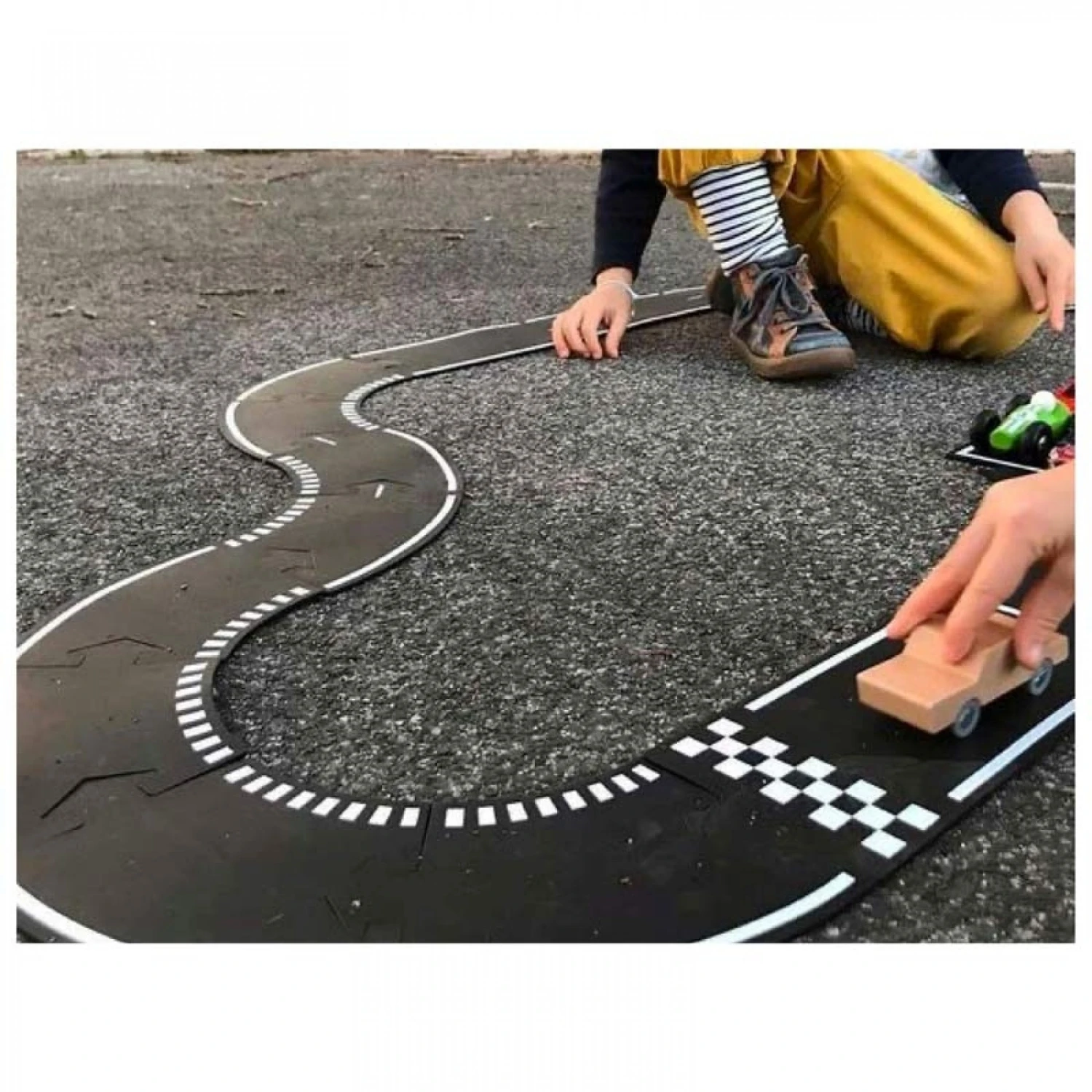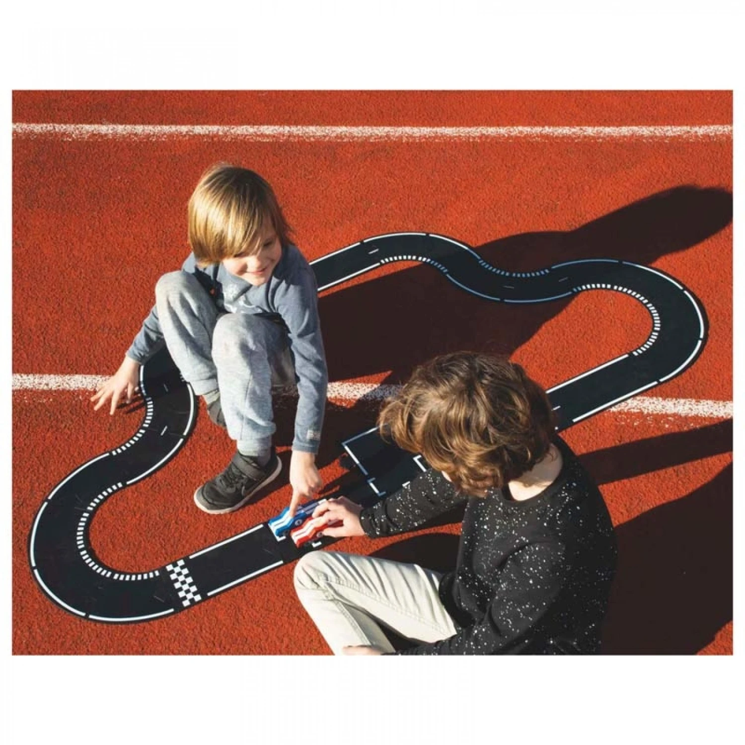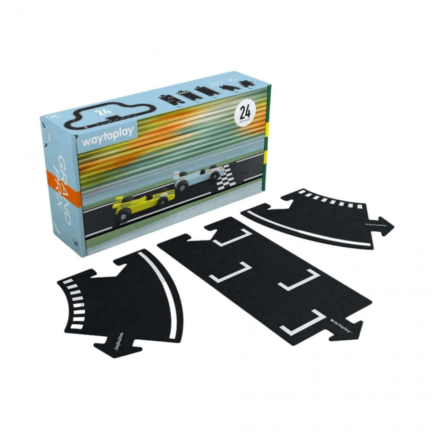 Le circuit de voitures Grand Prix 24 pièces de WayToPlay est idéal pour commencer à créer ses propres courses. Les pièces en caoutchouc durable, flexible et de haute qualité sont facilement emboitables et sont imprimées en recto-verso. Elles offrent de nombreuses possibilités de combinaisons.