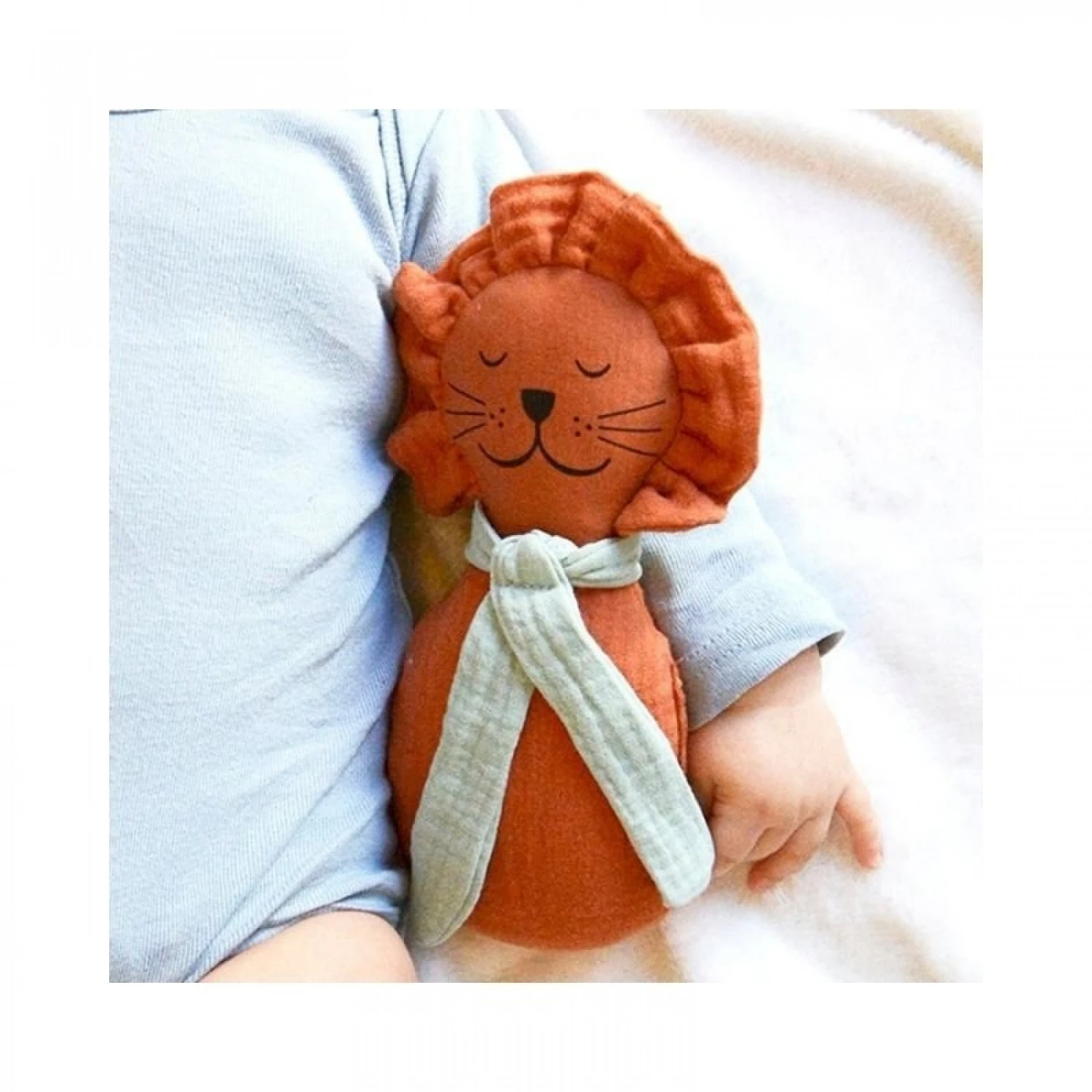 Doudou grelot Lion orange coton biologique de aPunt Barcelona