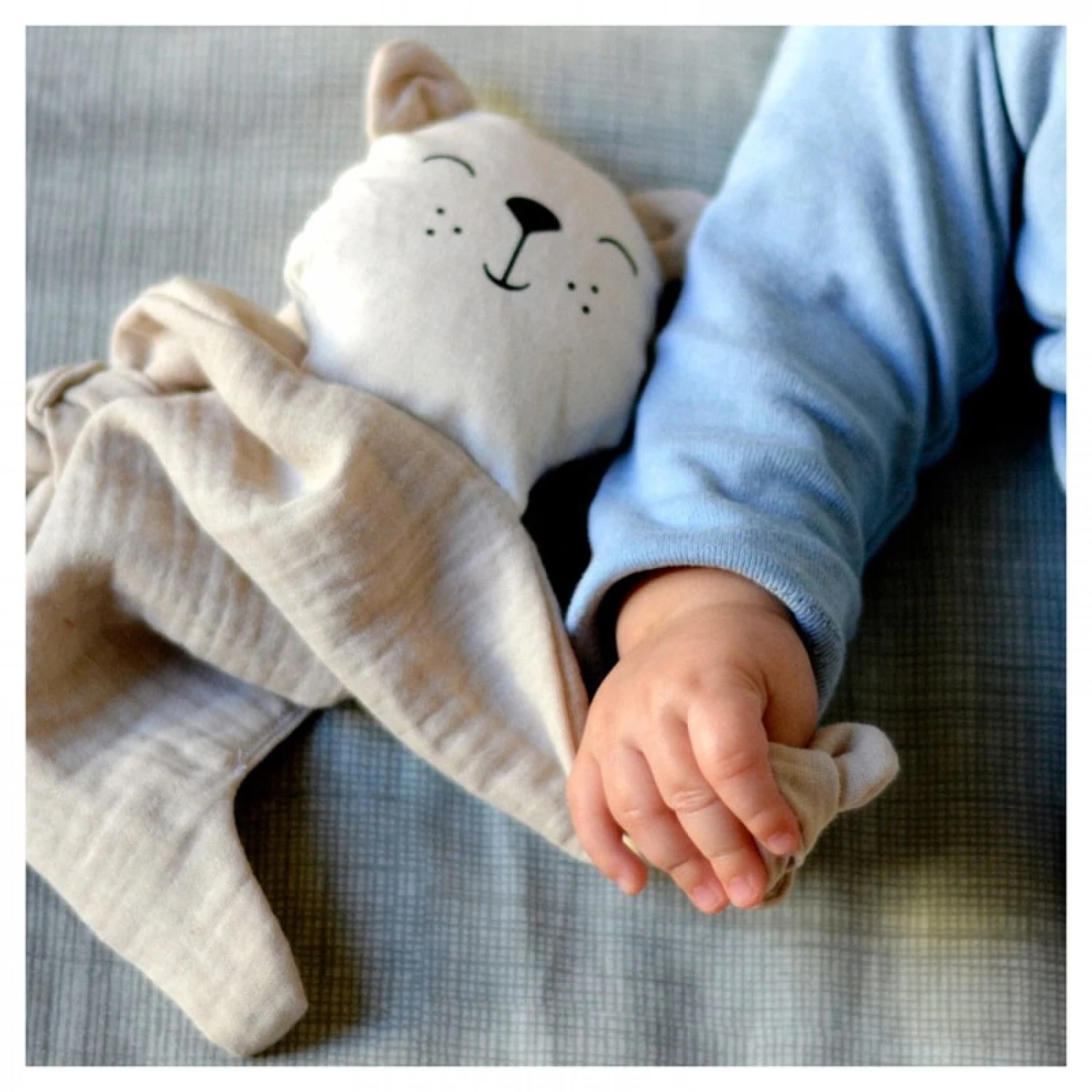 Le doudou Ourson crème de la marque aPunt Barcelona est fabriqué en gaze de coton biologique certifié GOTS. Ce petit ours très doux accompagnera votre bébé dans ses plus beaux rêves.