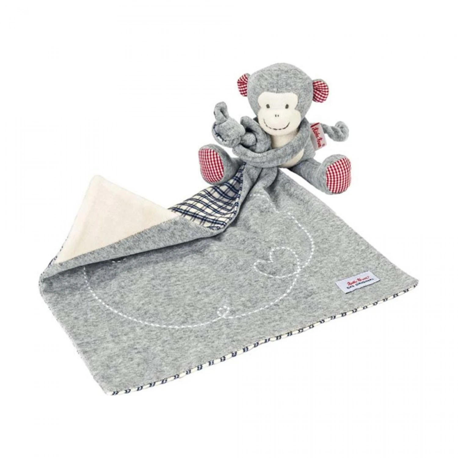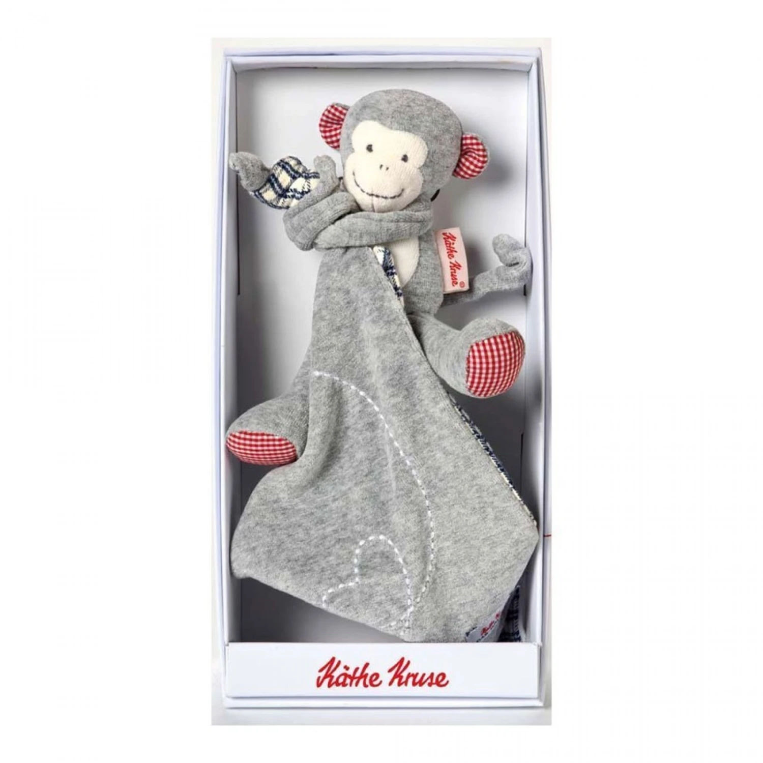 Un doudou Singe avec sa couverture-serviette, grande classique de la collection Käthe Kruse. Emballé dans sa belle boîte coffret cadeau, ce doudou fera sensation.