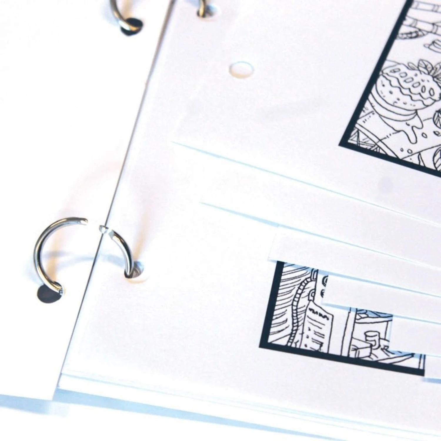 Côté pratique : les feuilles sont reliées à l’aide d’anneaux. Vous pourrez ainsi détacher très facilement un dessin de votre carnet pour l’exposer.