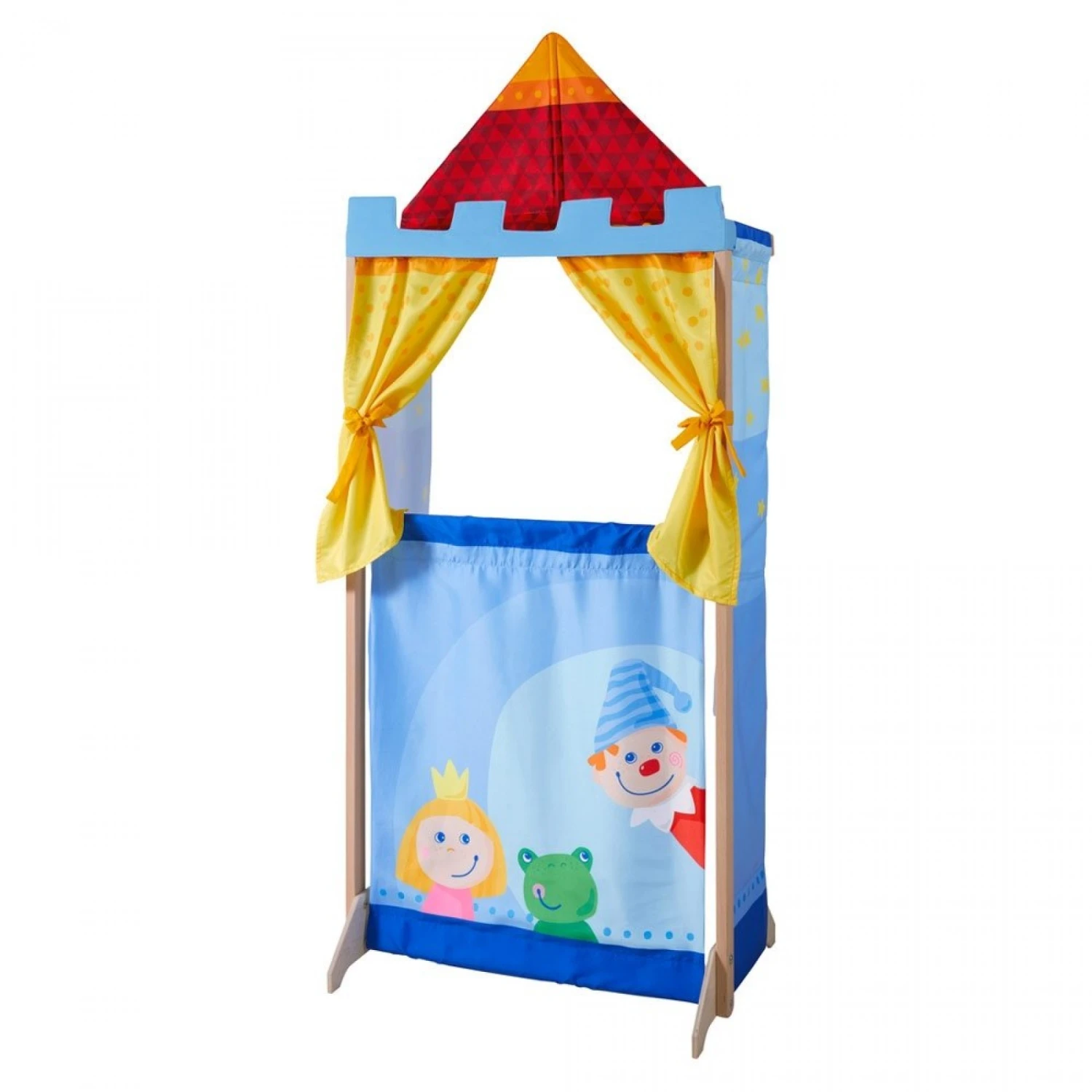 Un théâtre de marionnettes fabriqué en Europe (Bulgarie) par Haba.