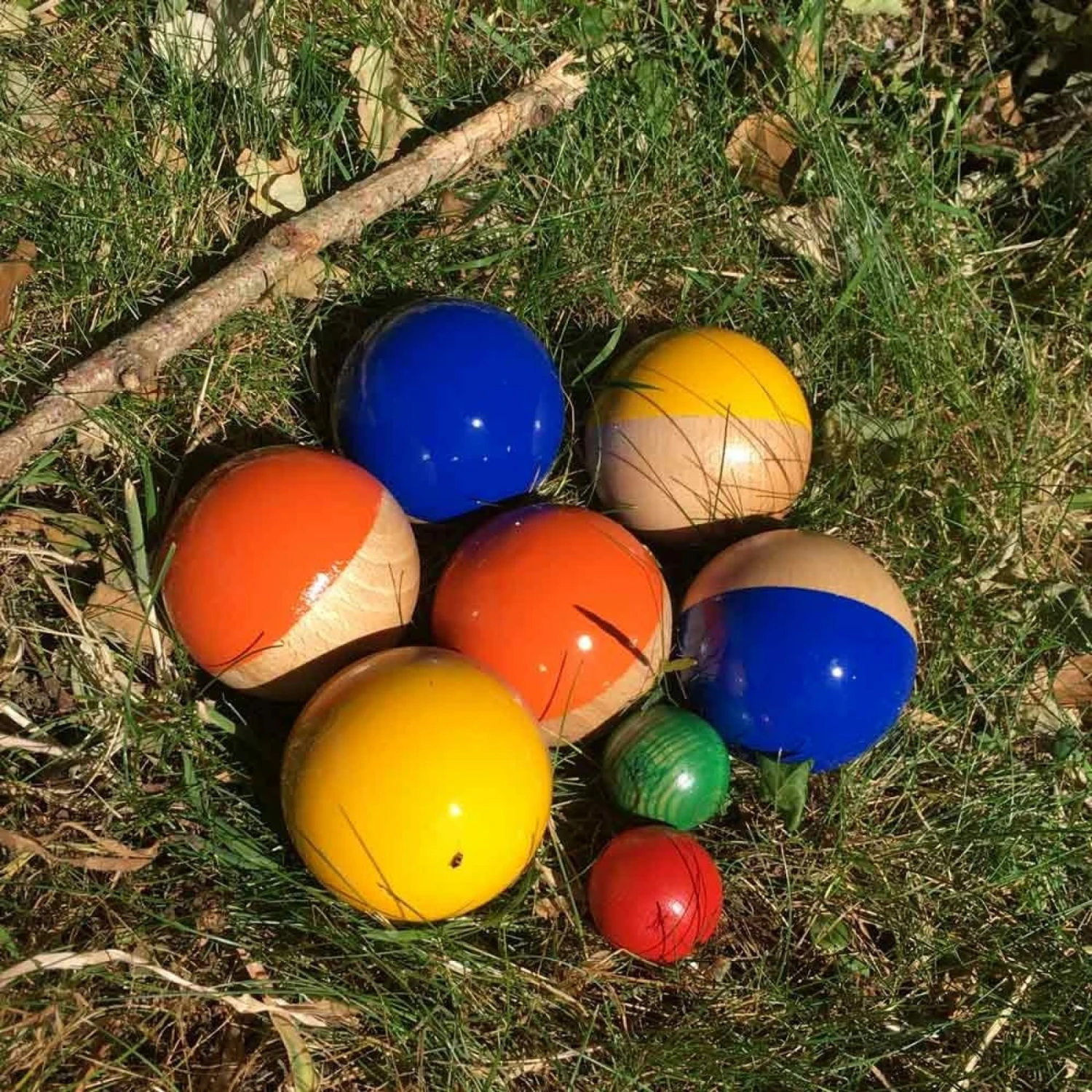 6 boules en bois … et 2 cochonnets, pour s’initier à la pétanque ! C’est parti pour des journées et des soirées bien remplies. Testez votre adresse et amusez-vous en famille.