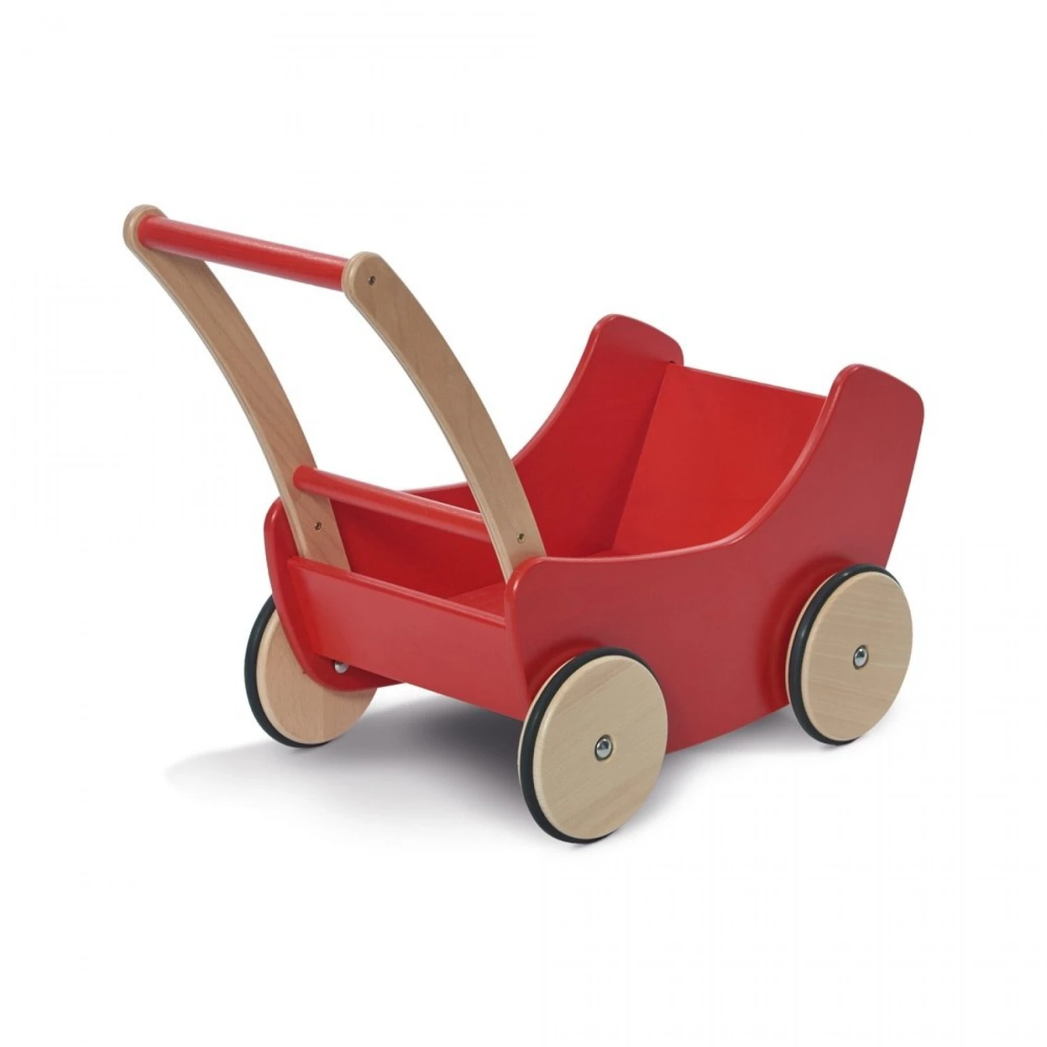Landau-Poussette en bois rouge avec literie de Nic Toys
