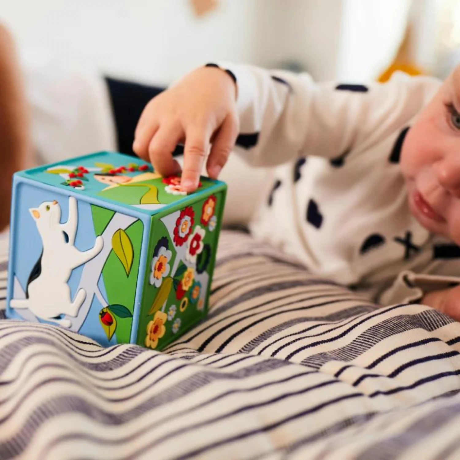 Développée pour les bébés, Ma Première Conteuse est sensorielle et son utilisation intuitive : secouer, tapoter, tourner… s’éveiller !