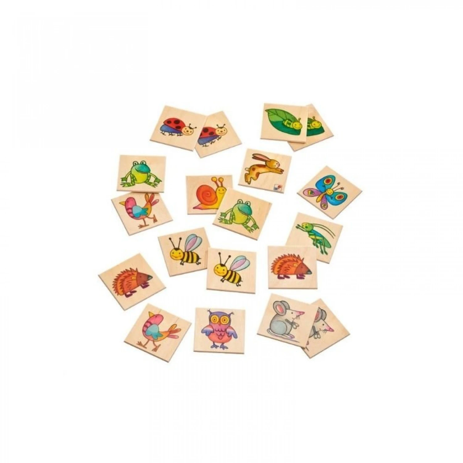 Où est ce qu’il est le lièvre déjà ? Ah non, ça c’est la place de la sauterelle. La prochaine fois je le saurai. Oh, zut : maman a trouvé le lièvre. La sauterelle, le hérisson, l’escargot, la chouette – quatre d’un coup ! Je vais attraper la souris et la chenille la prochaine fois ! Au total 12 jolis motifs du monde de la forêt et de la prairie cherchent leur semblable.