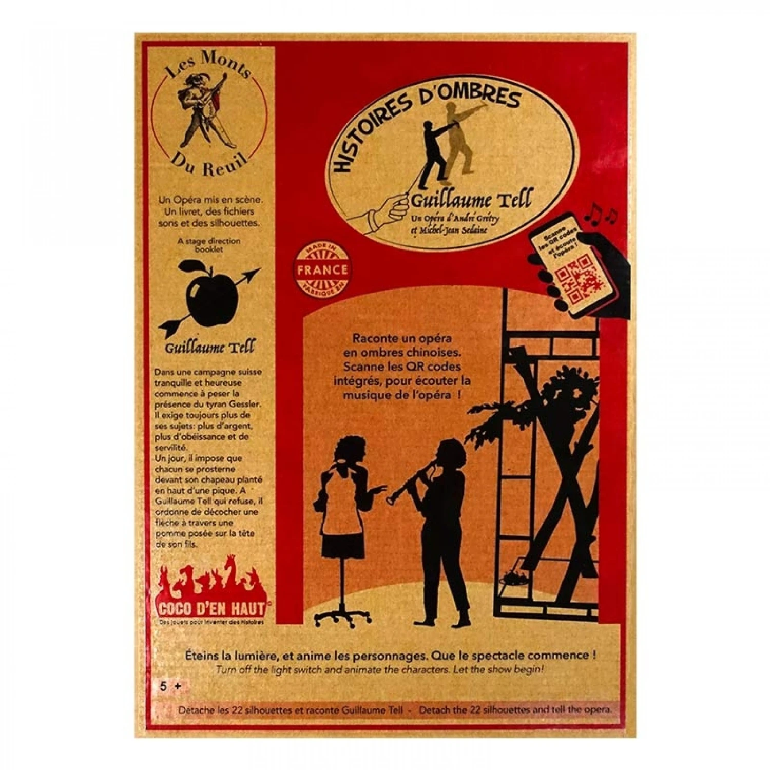 Cette collection « Opéra en ombres » est éditée en étroite collaboration avec la compagnie des Monts du Reuil. Une histoire, un livret, des silhouettes et des liens pour écouter tous les airs et les chants des opéras.