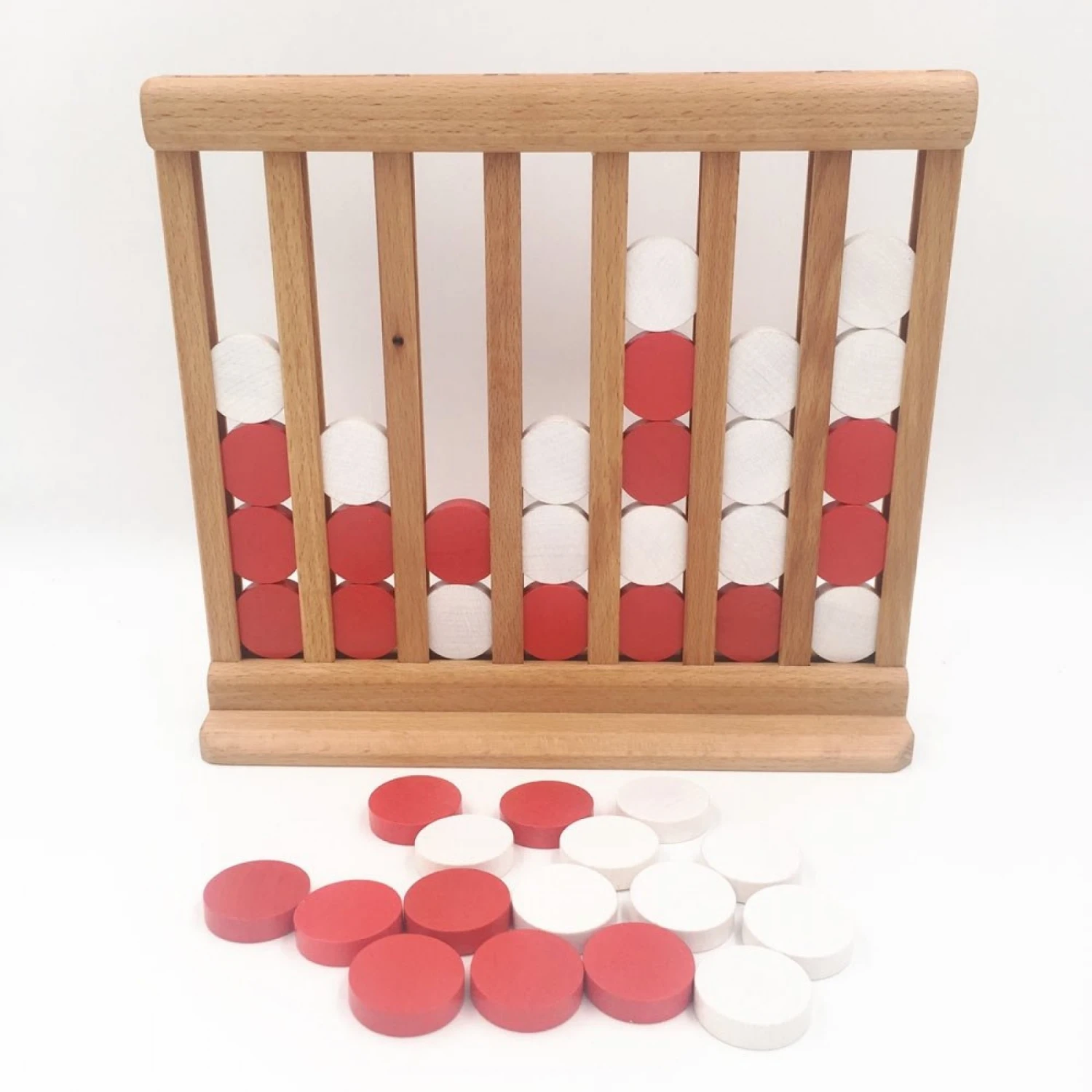 But du jeu : être le premier joueur à relier ses 4 pions à l’horizontale, à la vertical ou en diagonale.