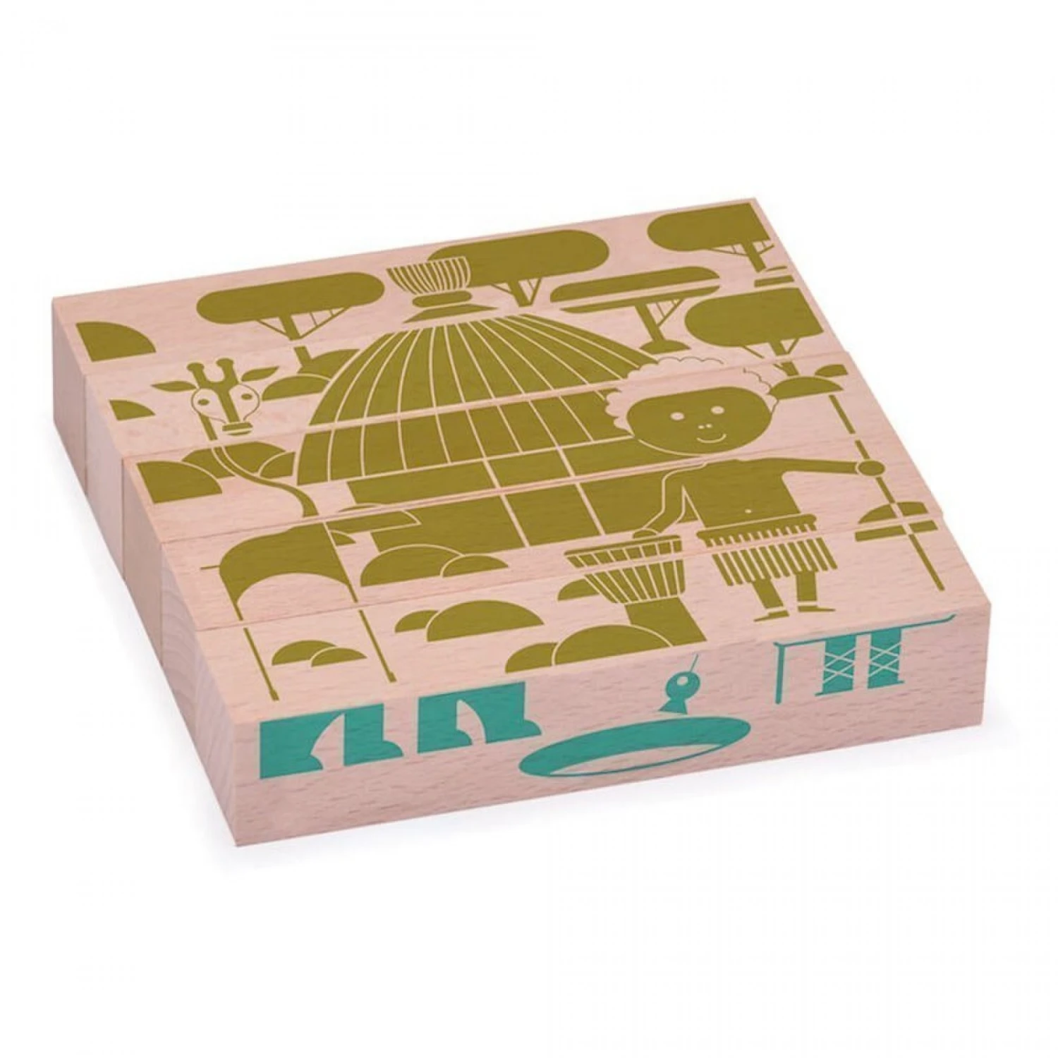 Casa Blocks, un puzzle en bois pour découvrir les habitats du monde. Un puzzle en bois premier âge pour s’amuser à reconstituer 4 images. Ces cinq blocs en bois sont imprimés sur 4 faces avec des encres à base d’eau.