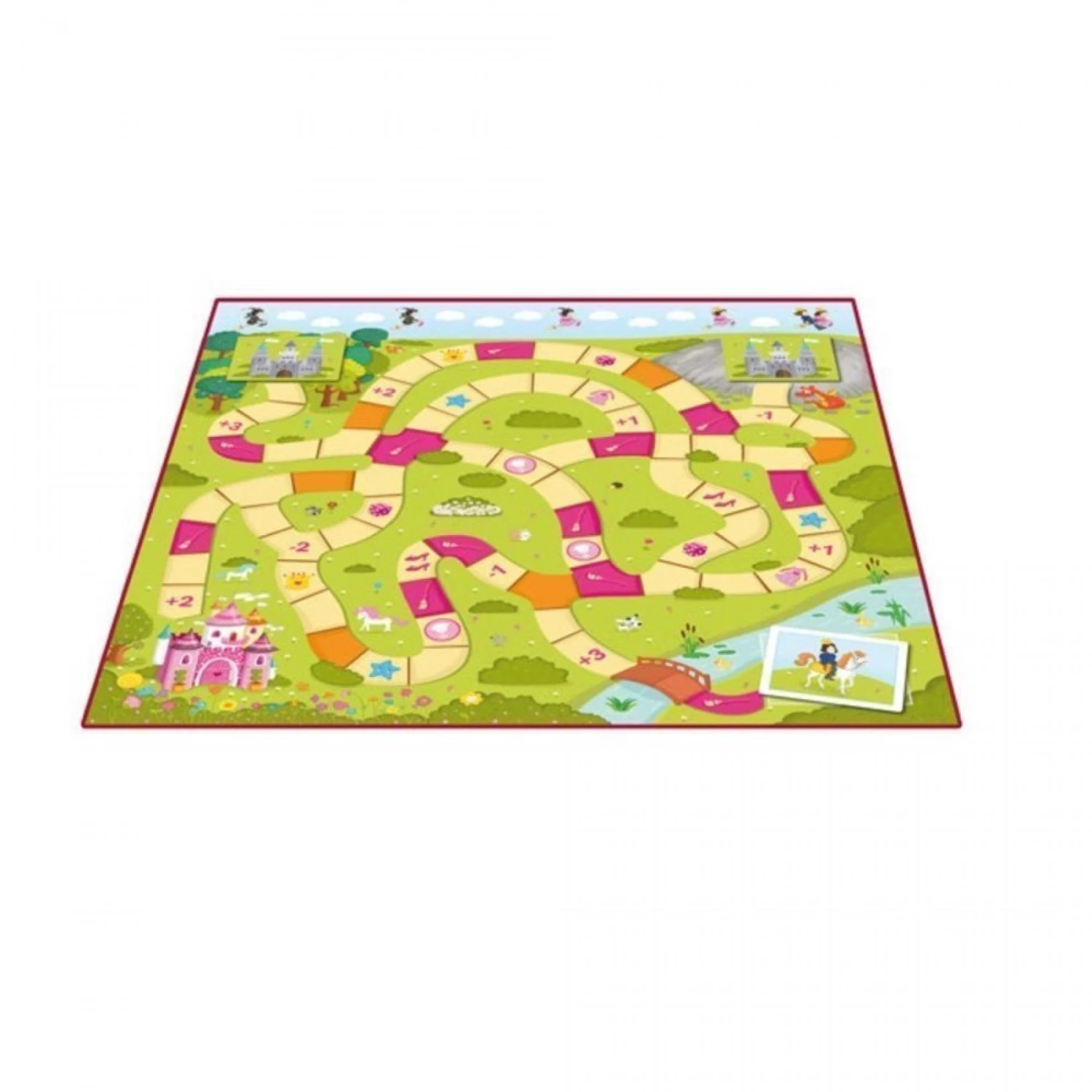 Règle du jeu : Un grand bal se prépare dans le royaume, le Prince cherche sa princesse. Pour ce bal, tu devras revêtir la plus belle tenue de princesse et le rejoindre dans l’un de ses trois châteaux. Pour cela, à chaque lancer de dé, à toi de choisir le meilleur chemin pour récupérer au plus vite la tenue complète de princesse : la robe, les chaussures et la couronne. Une fois que tu as les 3 accessoires, tu peux te diriger vers l’un de trois châteaux pour découvrir si le Prince est là. Il est là ? C’est gagné, sinon tu continues ton chemin vers un autre château. Mais, attention le temps presse car une sorcière est, aussi, à la recherche du prince…Si la sorcière s’envole avec le prince sur son balai magique, la partie est perdue.