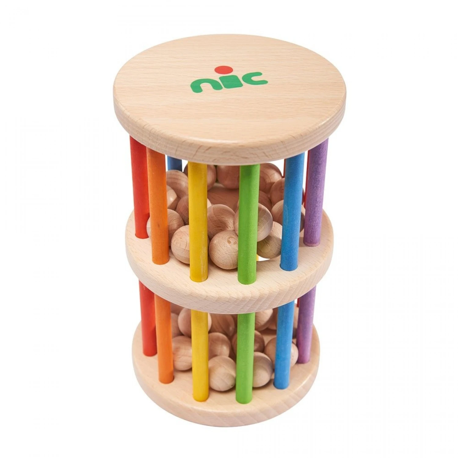 Un rouleau en bois à manipuler, qui émet un cliquetis lorsque les billes se déplacent à l’intérieur. Votre enfant portera rapidement son attention sur ce jouet en bois à manipuler et à faire rouler. Un jouet stimulant la motricité, la concentration et la découverte.