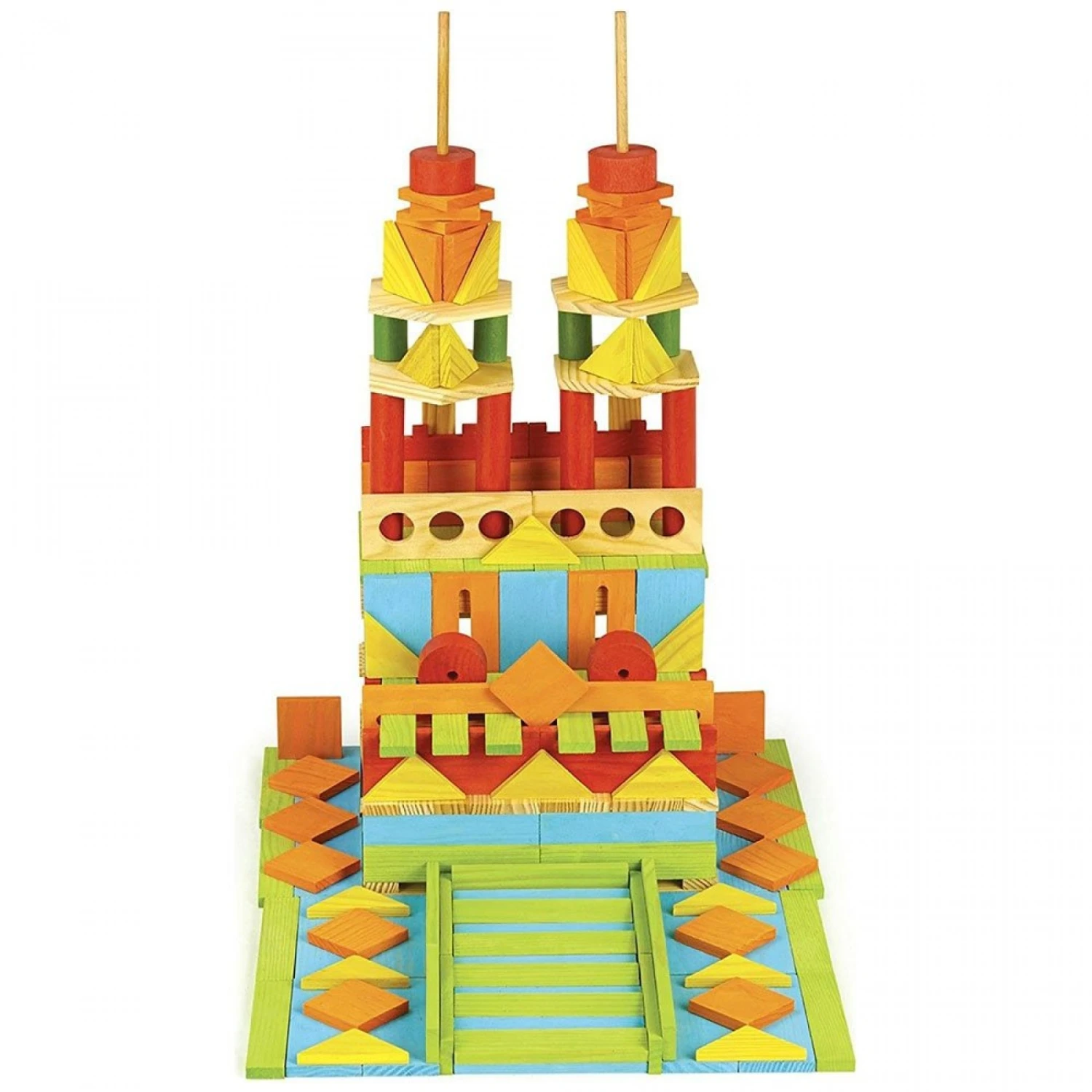 Un jeu de construction contenant 200 pièces en bois aux formes et couleurs variées pour réaliser la construction de vos rêves…