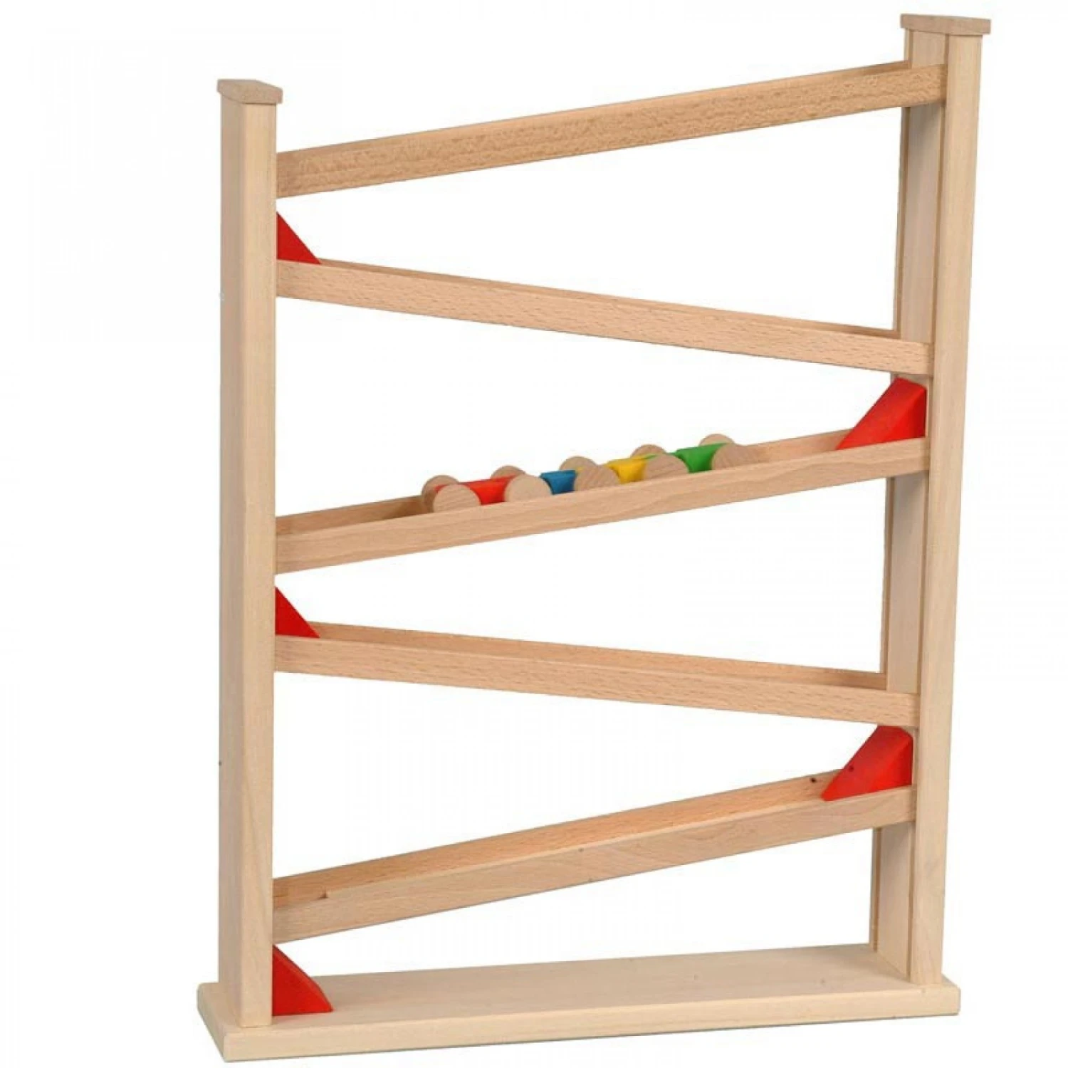 Un classique des jouets en bois, le petit train dévale les pentes à toute allure.