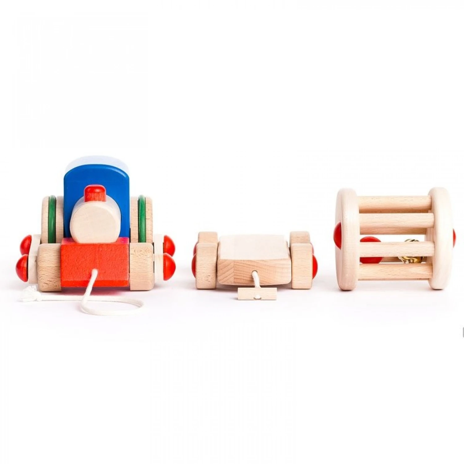 Ce petit train est destiné aux plus petits. Lorsque l’enfant pousse le train, la cloche à l’intérieur du wagon retentit. Un jouet en bois à traîner original, le wagon et la locomotive sont rattachés entre eux et se désolidarisent facilement.