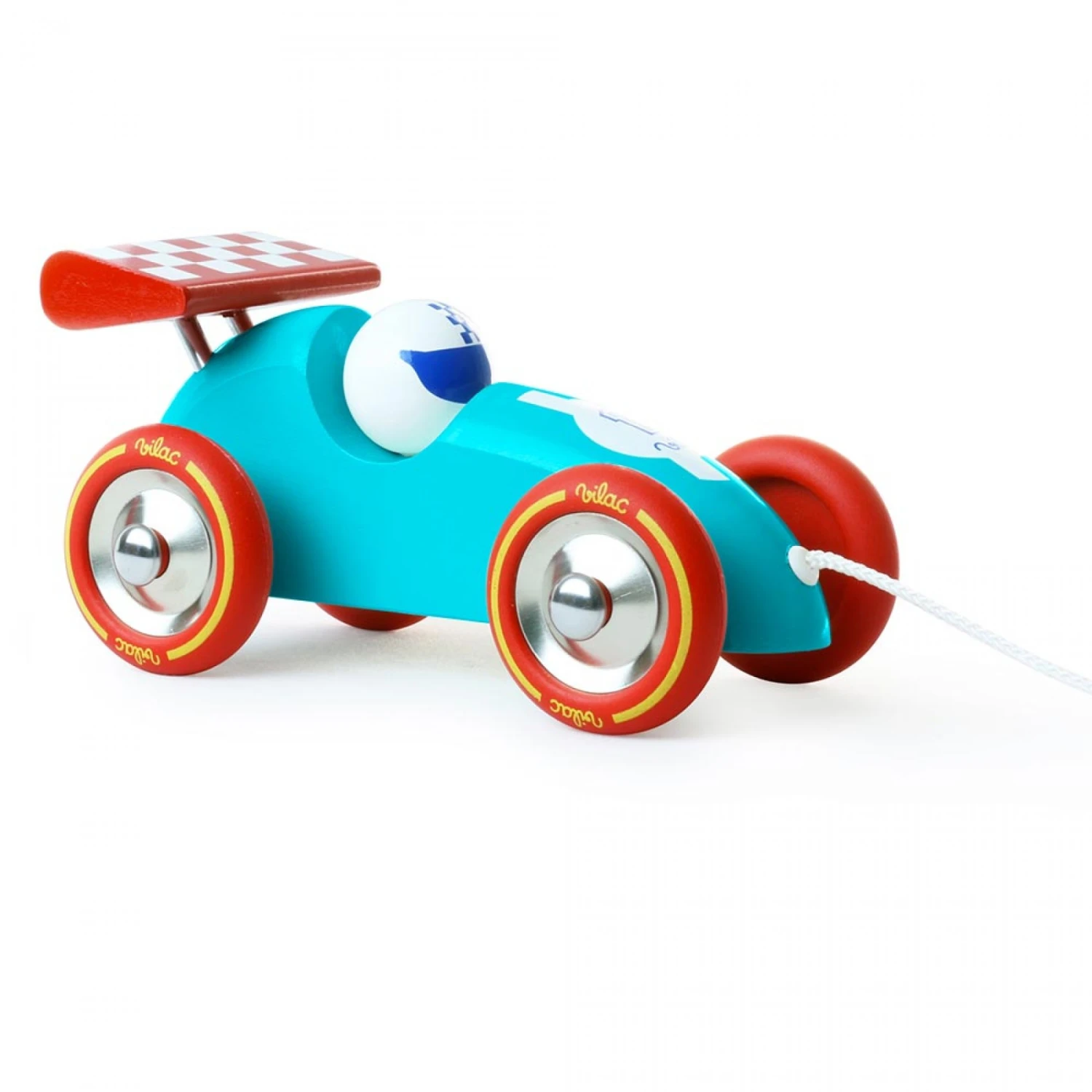 Voiture de course à traîner turquoise/rouge de Vilac