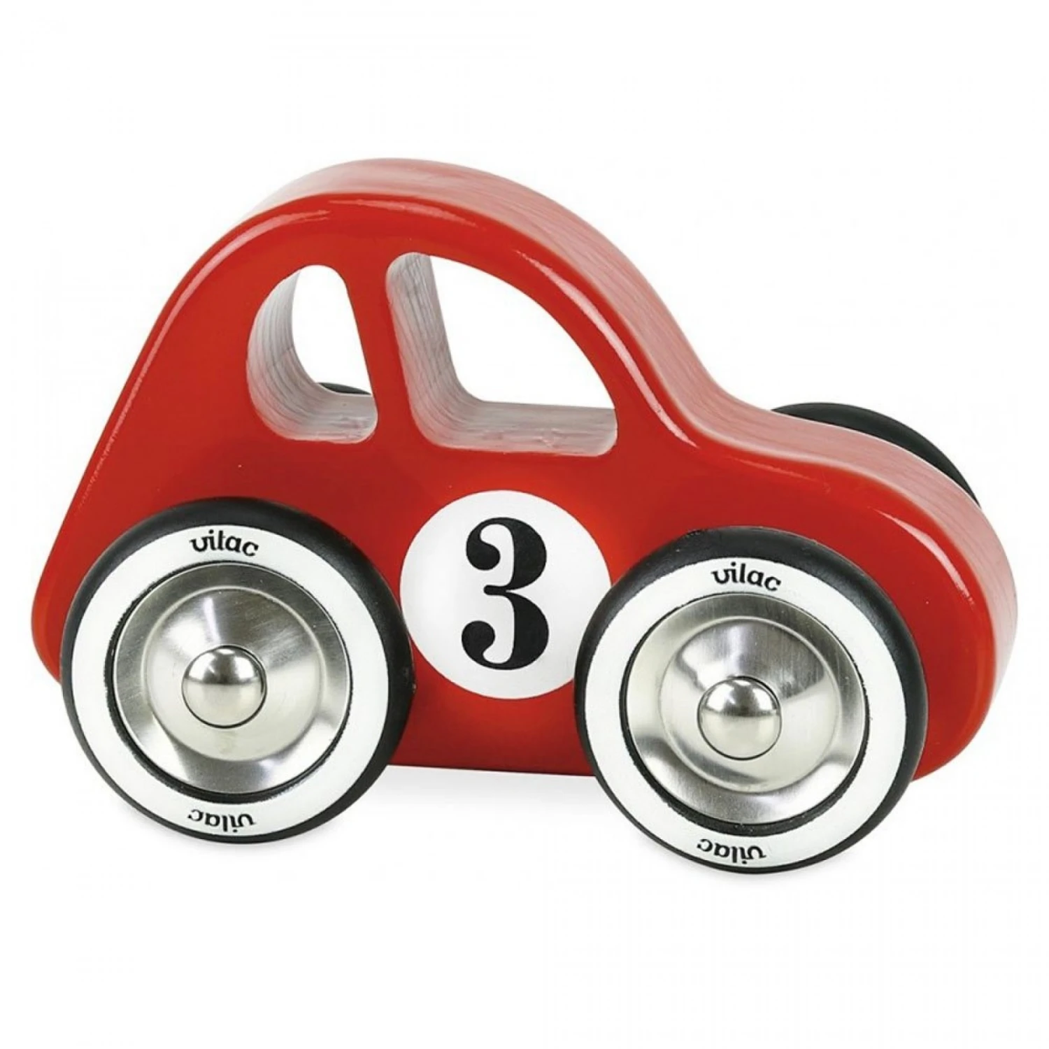 Penchez la voiture et elle swinguera naturellement à droite ou à gauche. En bois laqué rouge, elle ne passe pas inaperçue et roule à la perfection avec ses roues en métal et ses pneus équipés de caoutchouc.