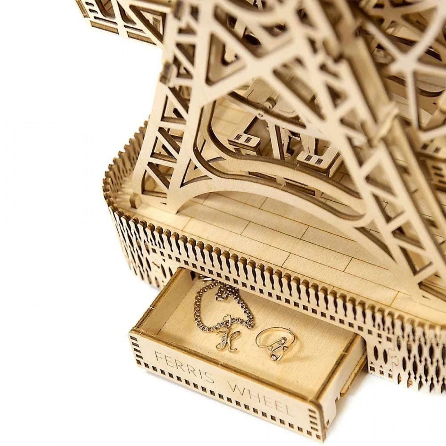 Cette maquette-puzzle en bois 3D avec découpe laser vous permettra de réaliser la grande roue de vos rêves. Un assemblage expliqué pas à pas ne nécessitant pas de colle. Le mécanisme de la roue s’active à l’aide d’une clef.